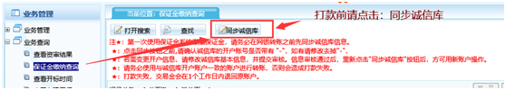 第二步:同步誠(chéng)信庫(kù)。保證金繳納前須點(diǎn)擊頁(yè)面上方的同步誠(chéng)信庫(kù)按鈕。