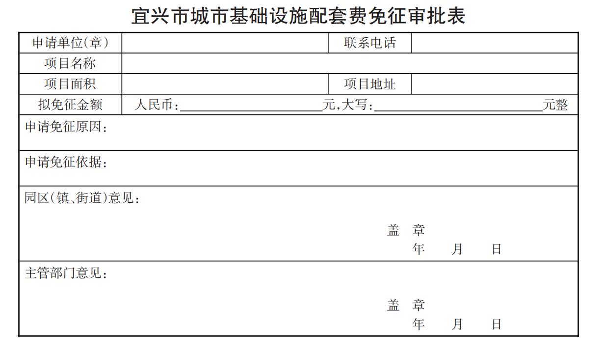 附件:宜興市城市基礎(chǔ)設(shè)施配套費免征審批表