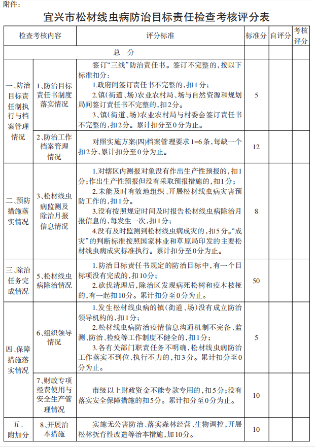 附件:宜興市松材線蟲病防治目標(biāo)責(zé)任檢查考核評分表