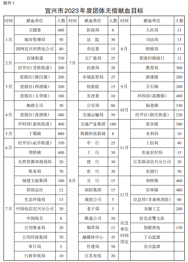 附件1:2023年宜興市團(tuán)體無償獻(xiàn)血目標(biāo)