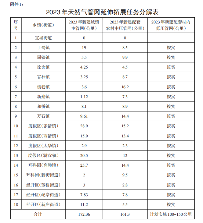 附件:1、2023年管道天然氣管網延伸拓展任務分解表;