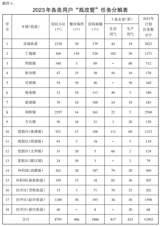3、2023年各類用戶“瓶改管”任務分解表。