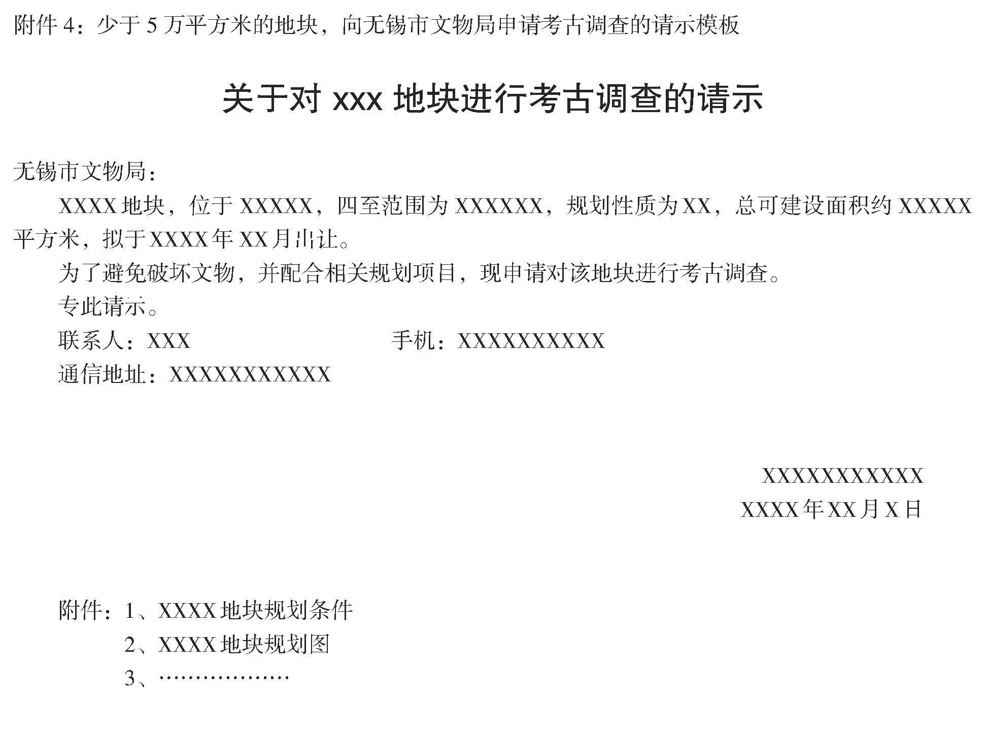 4.向無錫市文物局申請考古調(diào)查的請示模板(用地面積低于5萬平方米的項目)