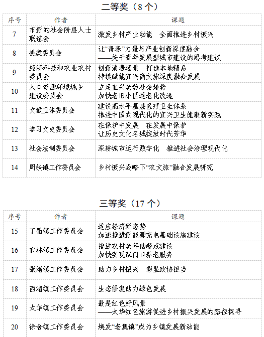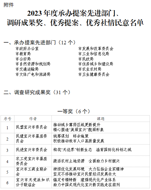附件:2023年度承辦提案先進(jìn)部門、調(diào)查研究成果獎(jiǎng)、優(yōu)秀提案、優(yōu)秀社情民意名單