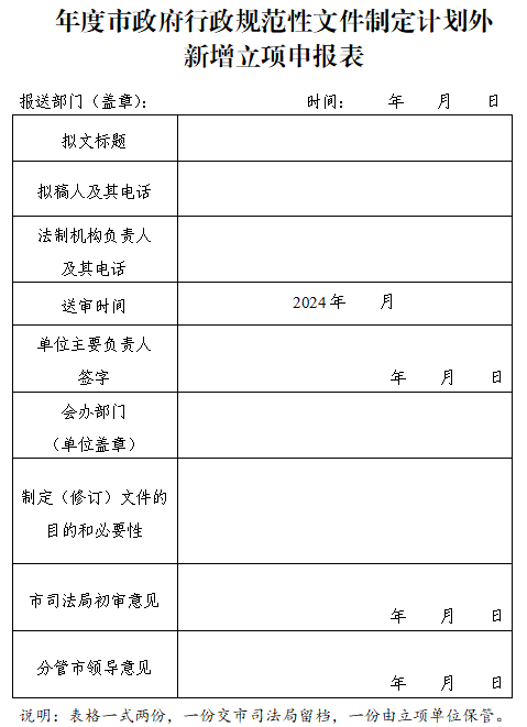 2.年度市政府行政規(guī)范性文件制定計劃外新增立項申報表