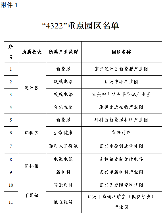 以宜興環(huán)??萍脊I(yè)園、經(jīng)濟(jì)開發(fā)區(qū)、工業(yè)集中區(qū)及其園中園等為主體,聚焦“3+3+N”現(xiàn)代產(chǎn)業(yè)以及未來產(chǎn)業(yè)領(lǐng)域,著重抓好園區(qū)開發(fā)建設(shè)、主導(dǎo)產(chǎn)業(yè)發(fā)展、項(xiàng)目落地保障和運(yùn)營管理等工作。