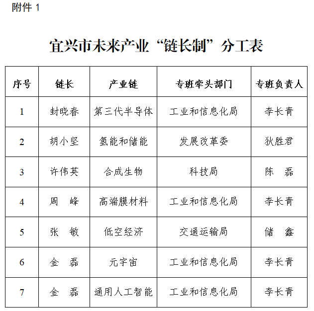附件:1.宜興市未來產(chǎn)業(yè)“鏈長制”分工表