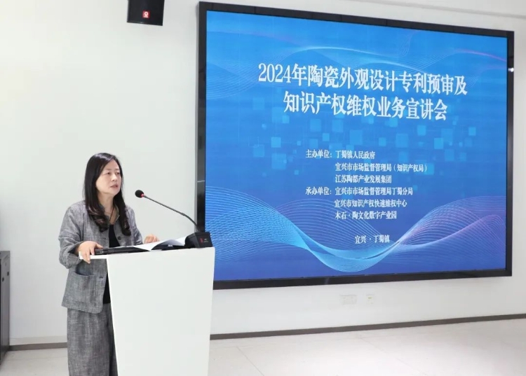 為更好地推動宜興陶瓷產(chǎn)業(yè)高質(zhì)量發(fā)展,營造注重創(chuàng)新和知識產(chǎn)權(quán)保護的濃厚氛圍,11月8日,丁蜀鎮(zhèn)召開陶瓷外觀設(shè)計專利預(yù)審及知識產(chǎn)權(quán)維權(quán)業(yè)務(wù)宣講會。此次培訓(xùn)旨在幫助陶瓷企業(yè)了解專利預(yù)審業(yè)務(wù)流程,充分發(fā)揮專利預(yù)審快速保護創(chuàng)新成果的作用。江蘇陶都產(chǎn)業(yè)發(fā)展集團有限公司董事長陳偉強,宜興市市場監(jiān)督管理局二級主辦陸靜等領(lǐng)導(dǎo)以及市陶協(xié)領(lǐng)導(dǎo)、陶瓷企業(yè)代表參加活動。