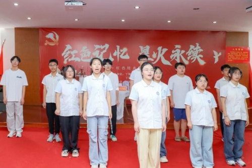 ▲活動(dòng)在丁蜀鎮(zhèn)大浦中學(xué)學(xué)生激昂的合唱《沒(méi)有共產(chǎn)黨就沒(méi)有新中國(guó)》中拉開(kāi)序幕,熟悉的旋律瞬間將現(xiàn)場(chǎng)觀眾帶回那段崢嶸歲月。