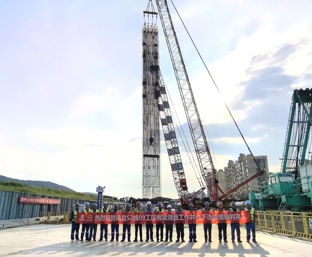 此次完工的地連墻宛如深埋梅梁湖畔的“鋼鐵長(zhǎng)城”,采用3000余噸鋼筋、20000余立方米混凝土澆筑,精心打造出64幅高精度地連墻。其中,部分墻體深度達(dá)53.6米,相當(dāng)于17層樓的高度,僅次于地鐵5號(hào)線南禪寺站和地鐵4號(hào)線二期無錫新區(qū)站的地連墻深度,以“銅墻鐵壁”之勢(shì)為工作井后續(xù)施工筑牢安全屏障。