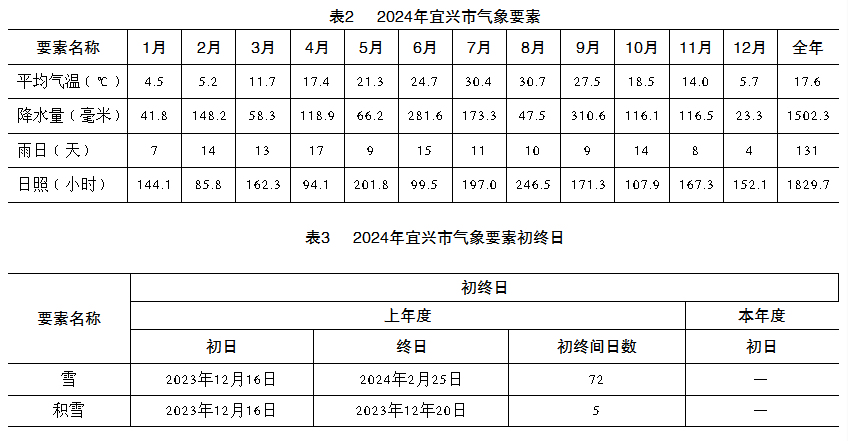 冬季(2023年12月—2024年2月):氣溫略偏低,降水偏多。冬季平均氣溫4.5℃,比常年偏低0.3℃;冬季降水量243.0毫米,比常年偏多29.0毫米。